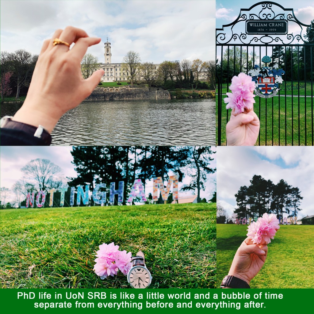 The relationship between PhD life, community bubbles, and the outside world is one I find constantly fascinating because memories added to daily routines are filled with gratitude and awe. If I weren’t a part of the group from SRB, I would have experienced the PhD days differently – I am quite sure of that. Some friends shared a slice of cake, comfort food and quality time, and some friends saved me during my health breakdown. Some may not even realise they have been there for me, and they will be always looked at to be inspired. PhD life in UoN SRB is like a little world, a bubble of time separate from everything before and everything after.